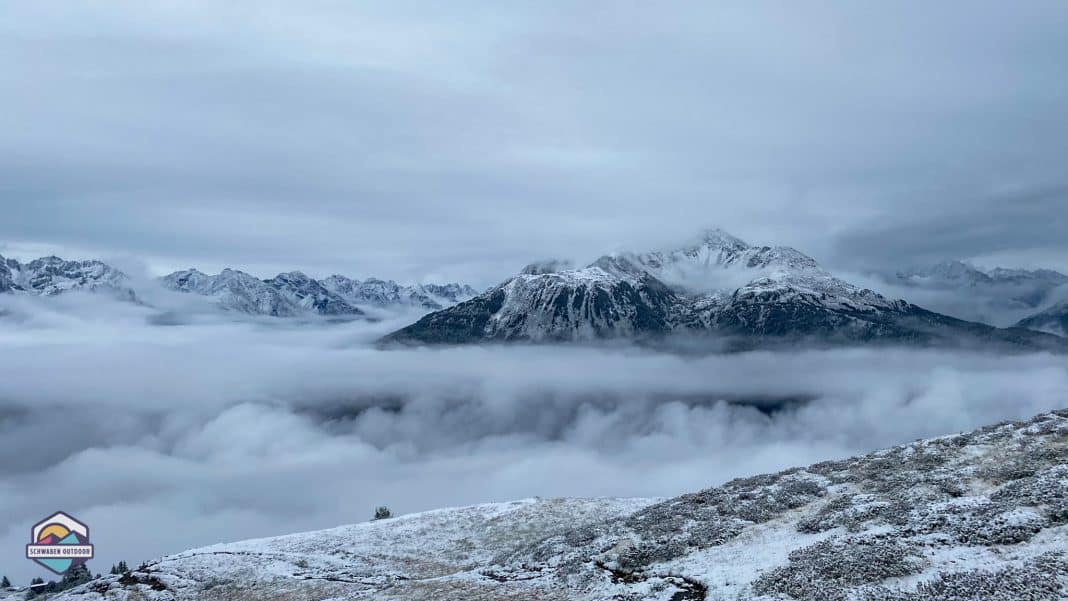Die Orginalroute geht eigentlich über die Zamser Skihütte und über den Venet Gipfel. Wir aber fahren mit unseren Kleinbussen zur Gogles Alm und wandern von dort in Richtung Wenns. Der frische Schnee macht die heutige Tour besonders. Die Stille in den Bergen und die leicht gezuckerten Wege sind eine ganz neue Erfahrung für uns. In einerm normalen Wanderurlaub wären wir heute in der Früh nicht aufgebrochen, sondern hätten den Wellnessbereich des Hotels genutzt. Bei einer Alpenquerung ist das aber nicht möglich, die nächste Etappe muss angegangen werden.