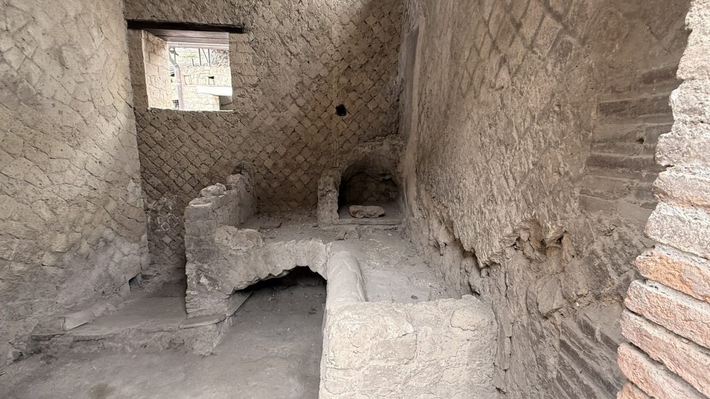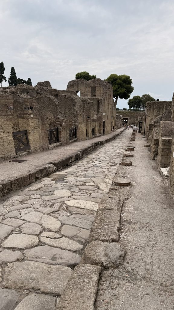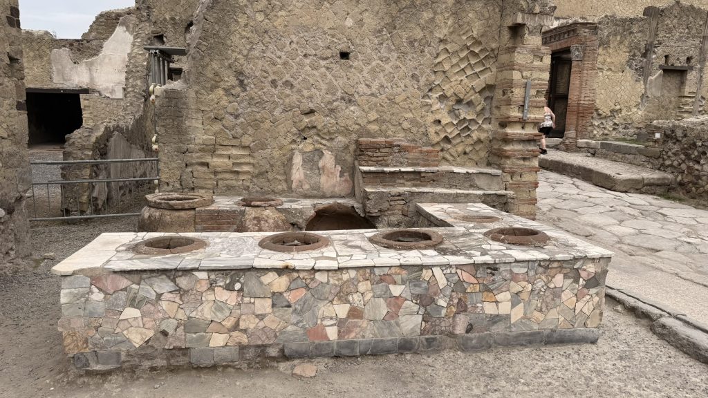 Da unsere Fähre nach Palermo erst um 21:00 Uhr ablegen wird, können wir am Abreisetag unser Wohnmobil noch im AgriCamp stehen lassen. So bleibt uns die Parkplatzsuche und ewiges warten am Hafen erspart und wir nutzen den gewonnen Tag um Ercolano noch einen Besuch abzustatten. Wie Pompei wurde Ercolano bei einem großen Ausbruch des Vesuvs mit Lava überflutet und die ganze Stadt zerstört. Die Ausgrabungen sind aber schon sehr weit und man bekommt einen eindrucksvollen Einblick in das Leben in dieser Stadt. Da Ercolano deutlich kleiner ist als Pompei ist hier auch viel weniger los. Man kann gemütlich in einem halben Tag alles erkunden. Was mir besonders gefallen hat, ist die Möglichkeit dass man mit dem Smartphone viele AR-Bilder erhält, wie die Stadt einmal ausgesehen hat. Die Tour wird mit dem Smartphone gemacht und an vielen Stellen lässt sich ein QR Code scannen und weitere Infos abrufen.