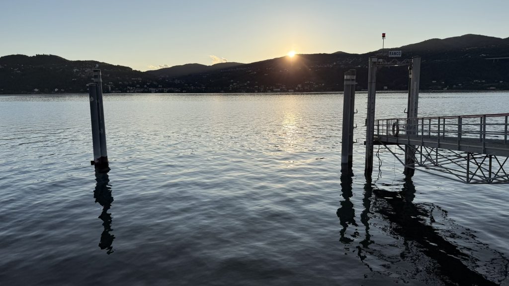 Gegen Mittag kommen wir auf dem AgriCamp an und können uns noch einen schönen Platz aussuchen. Vom Campingplatz sind es nur 10 Minuten mit dem Rad nach Ranco und an den See. Wir beschließen am Nachmittag noch die Sonne und das Wasser zu genießen und finden eine tolle Bar direkt am Wasser. Gute Getränke gibt es hier sowieso. Da wir die leckeren Kleinigkeiten wie Käse, Oliven und Speck bereits entdeckt haben, wird das auch unser Abendessen. Die Nähe zum Stellplatz ist dafür ideal.