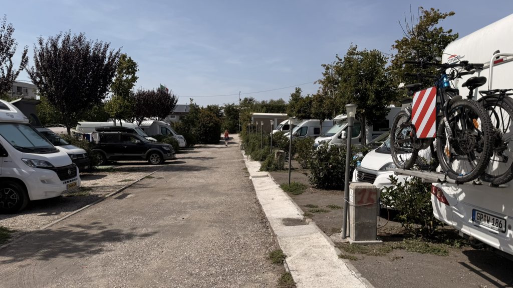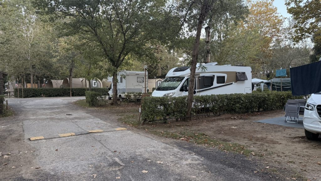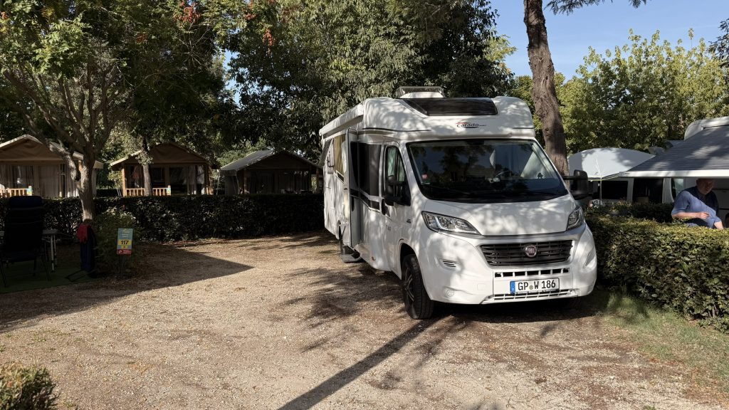 Da wir nicht mehr los wollen, geben wir der Pizzeria auf dem Platz eine Chance. Die Pizzen sind hier echt gut – auch wenn alles auf dem Platz schon etwas in die Jahre gekommen ist. Insgesamt ein schöner Campingplatz mit viel Schatten und einem eigenen Pool (der allerdings Eintritt kostet).