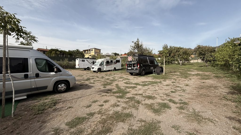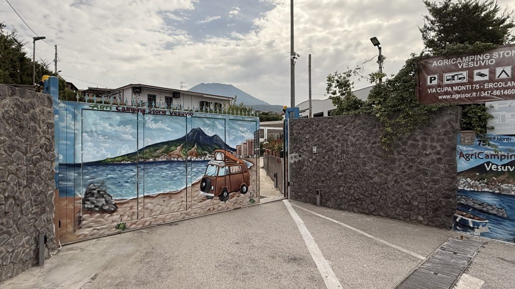Den Platz in Neapel haben wir schon von Zuhause reserviert. Der Agricamp Stone, direkt am Fuße des Vesuvs, ist ein echtes Schmuckstück. Man fährt von der Autobahn ab und steht vor einem großen Metall-Tor und hohen Mauern. Erster Eindruck: “Oh je!”.