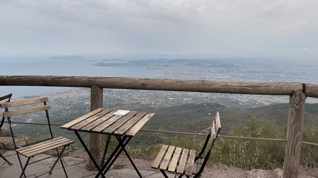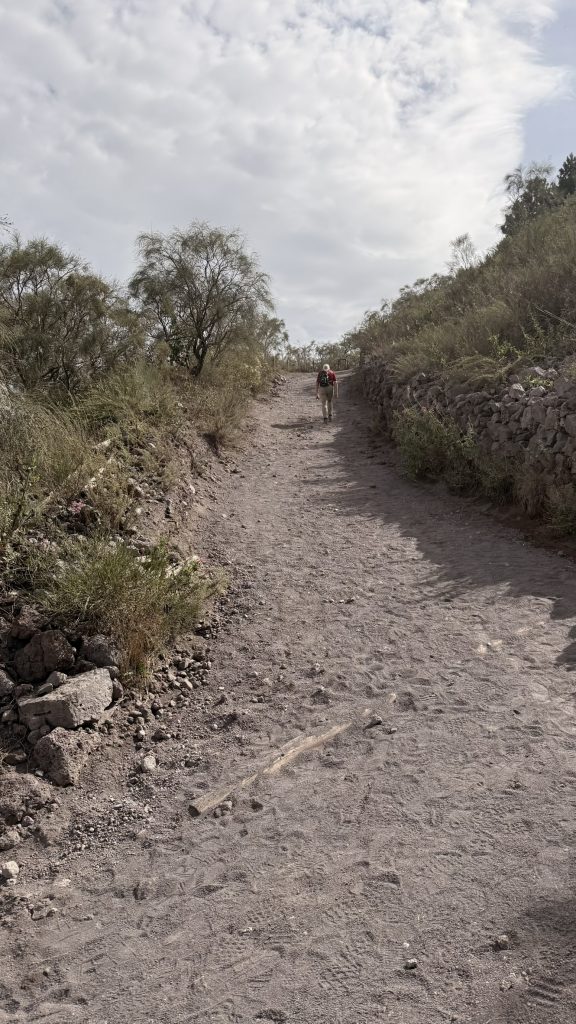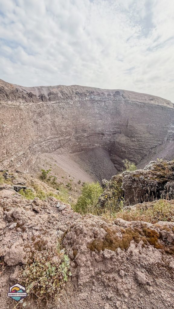 Ein Ausflug zum Vesuv muss natürlich auch sein, wenn man schon in Neapel ist. Wir können den Ausflug inkl. Tickets direkt an unserem AgriCamp buchen und werden vor dem Tor abgeholt und dort auch wieder abgesetzt. Mit dem Bus geht es dann direkt bis zum Eingang des Nationalparks. Anscheinend kann man auch mit dem Auto / Camper hoch fahren, aber ich würde mir das nicht geben. Die Straße ist wirklich schmal und die Parkplätze mehr als begrenzt. Da lohnt sich der Bus-Transfer absolut. Vom Eingang geht es dann noch 45min einen Fußweg nach oben zum Krater. Heute ist es etwas bewölkt, das macht den Aufstieg sehr viel angenehmer. Oben angekommen bietet sich eine tolle Aussicht auf Neapel, die Amalfiküste und natürlich dem Vulkan. Man kann ungefähr zur Hälfte um den Krater laufen und hat immer wieder einen guten Blick hinein. Teilweise steigt noch Dampf aus den Spalten auf.